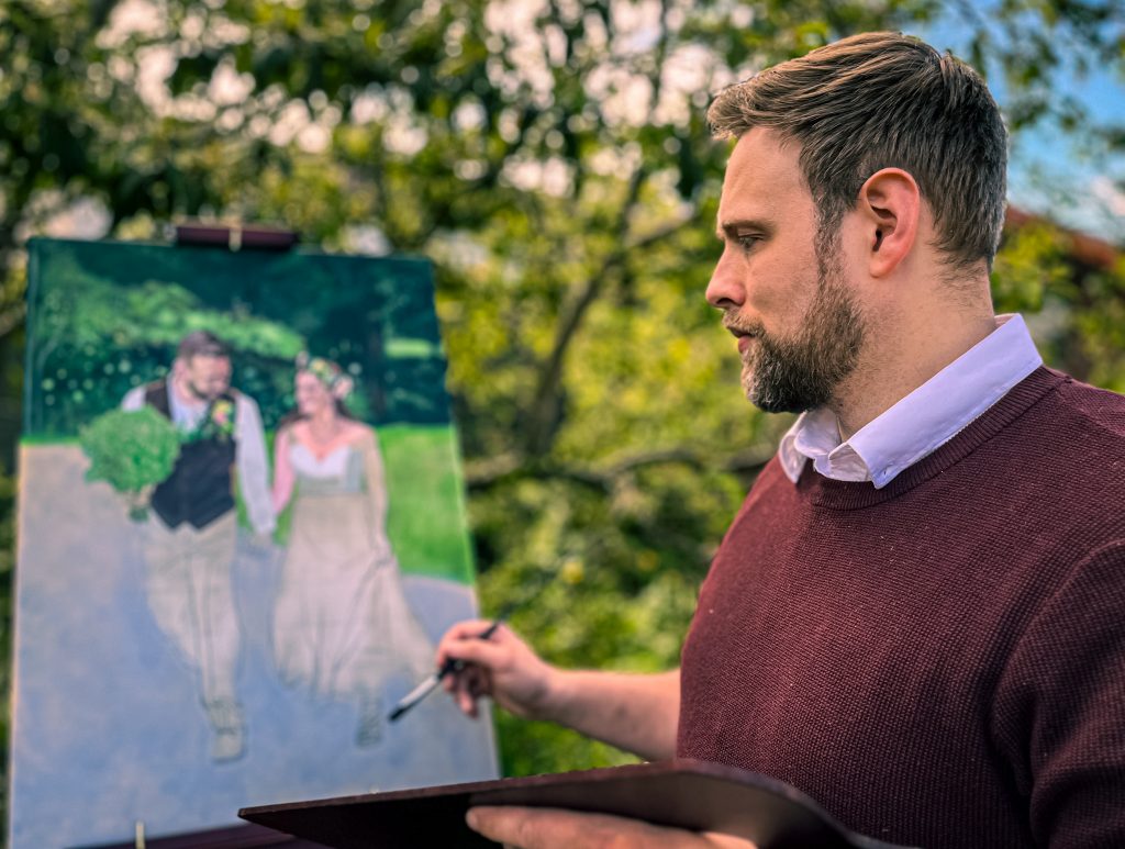 Few People get their portrait professionally painted these days. Having a Live Painter can elevate your wedding day and make you feel truly special.