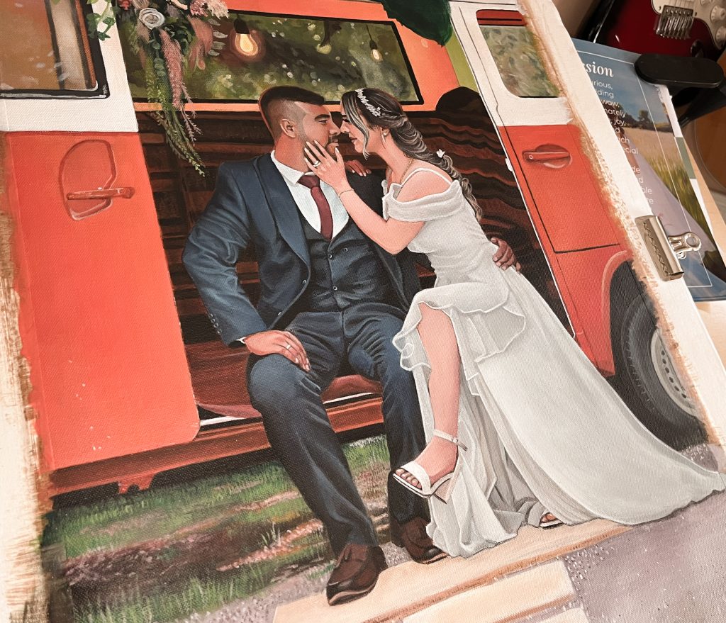 Having a stunning, bespoke painting on your wall captures that joy, love and connection of your special event, letting you re-experience those precious memories – every day!